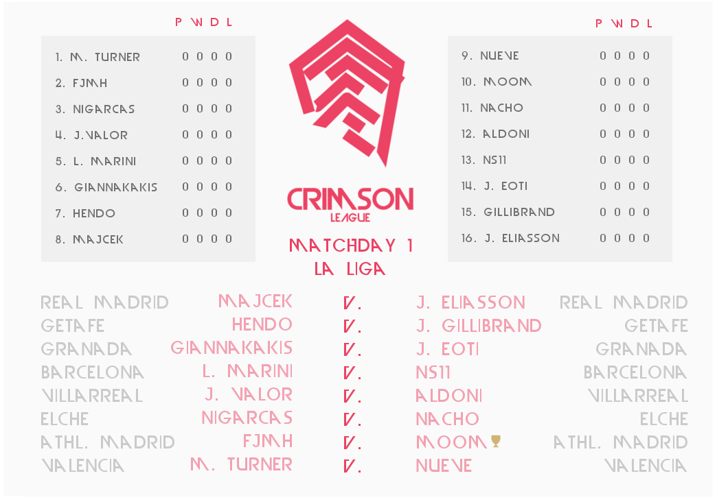 Matchday 1 Draw : Crimson League