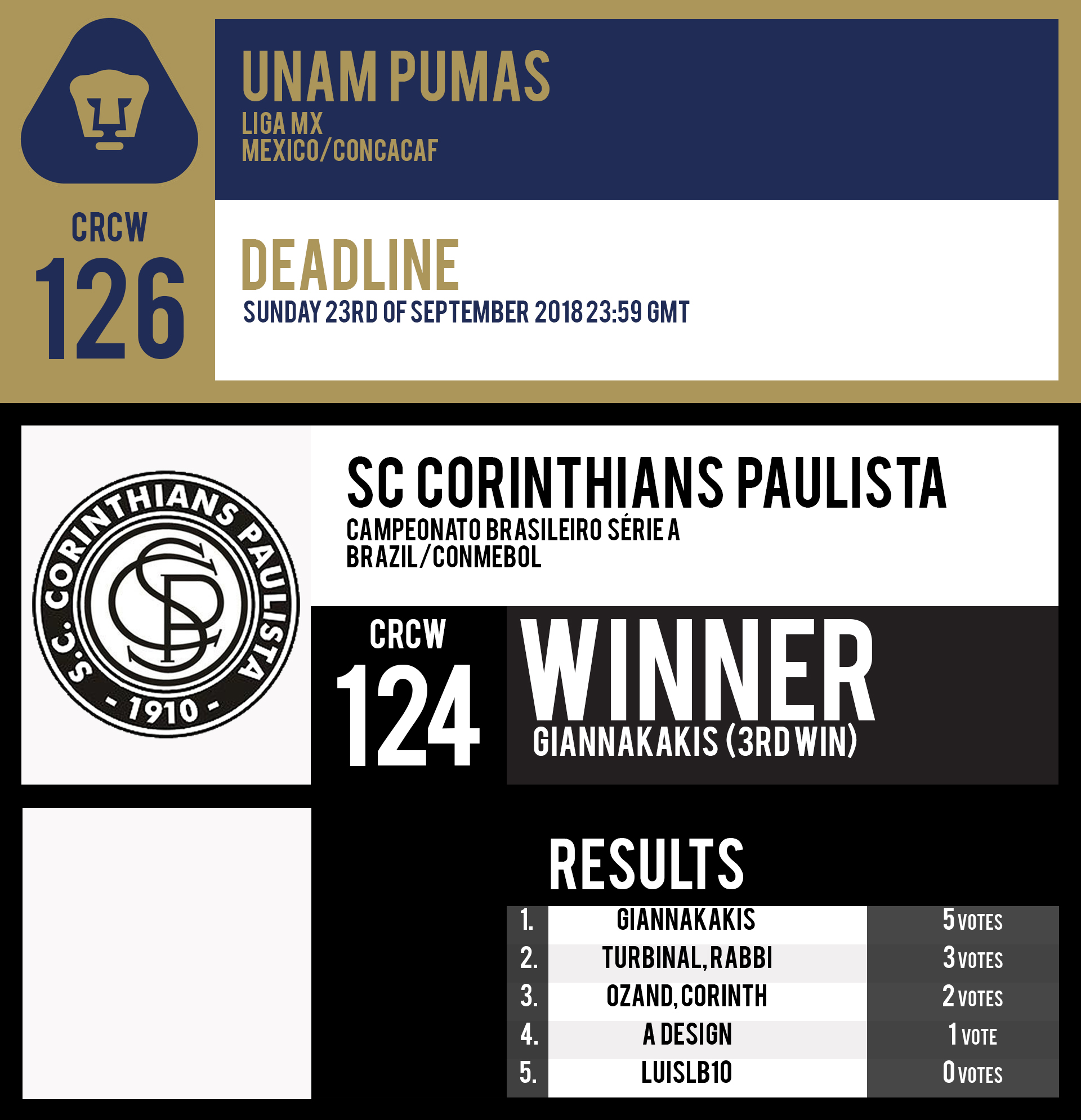 CRCW 126 | UNAM PUMAS | CRCW 124 | RESULTS