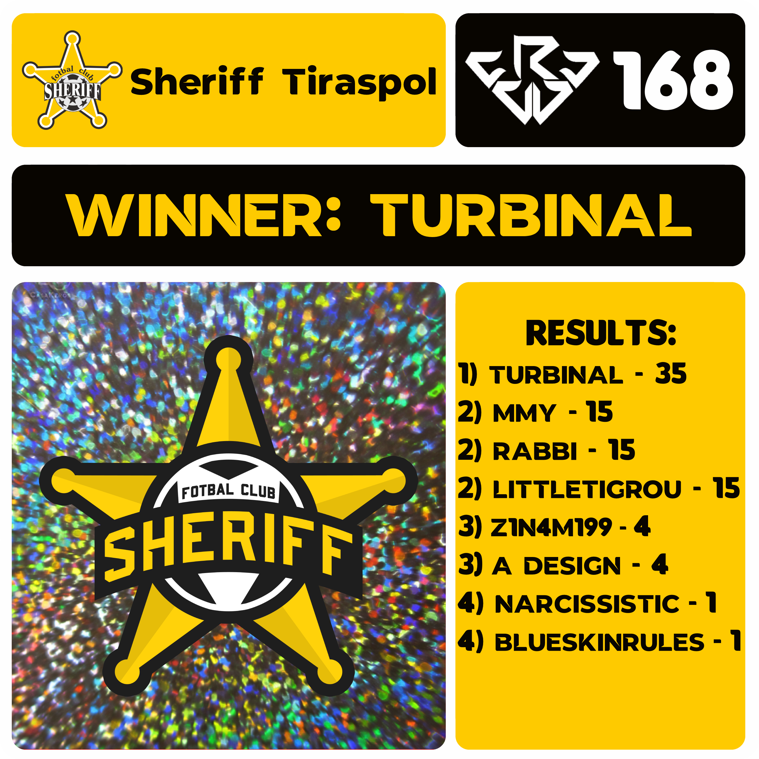 CRCW 168 RESULTS - FC SHERIFF TIRASPOL