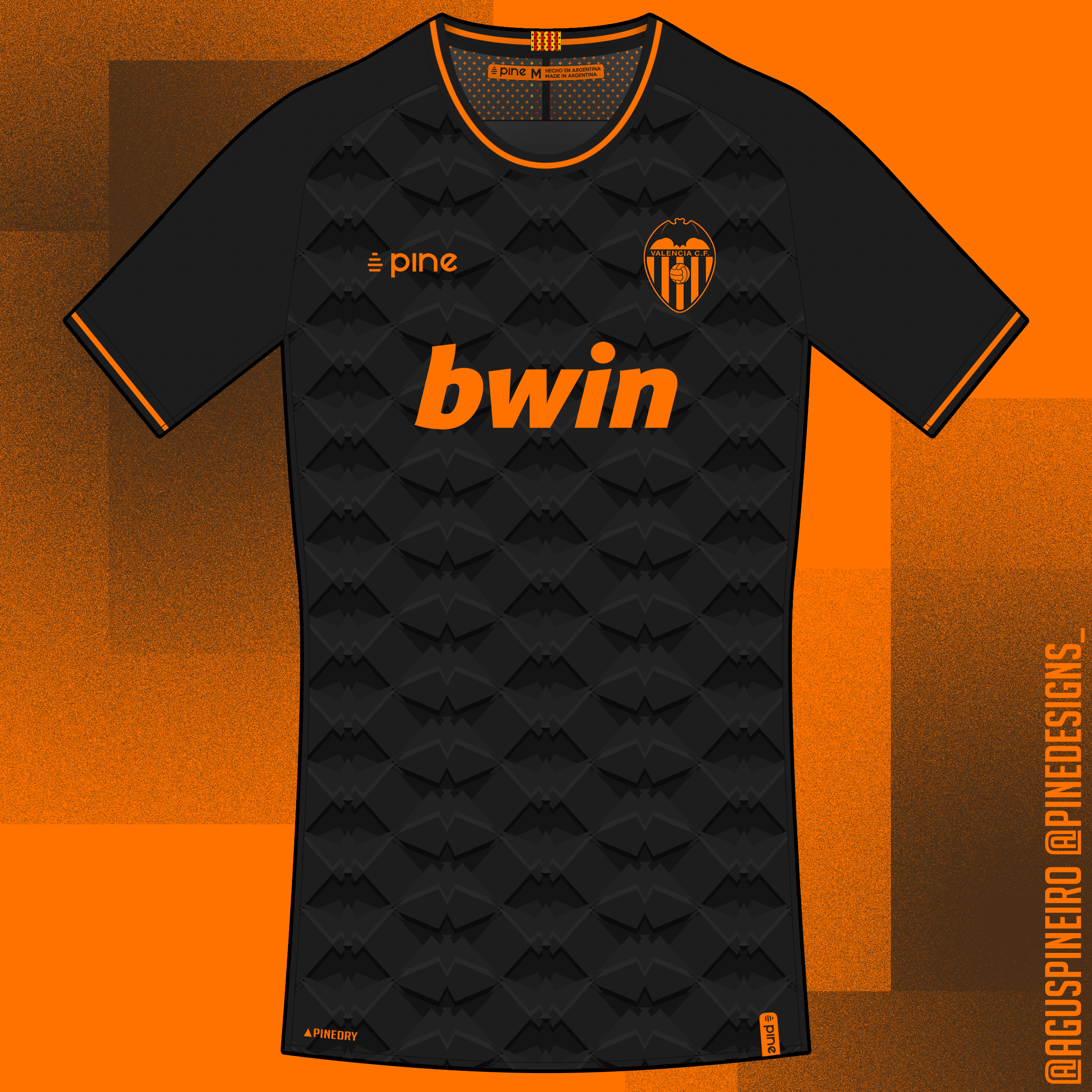 • Generic Description: Away kit design for Valencia C. F., from Valencia, Spain. The pattern is made of simplifyed versions of the bat in the club's crest.