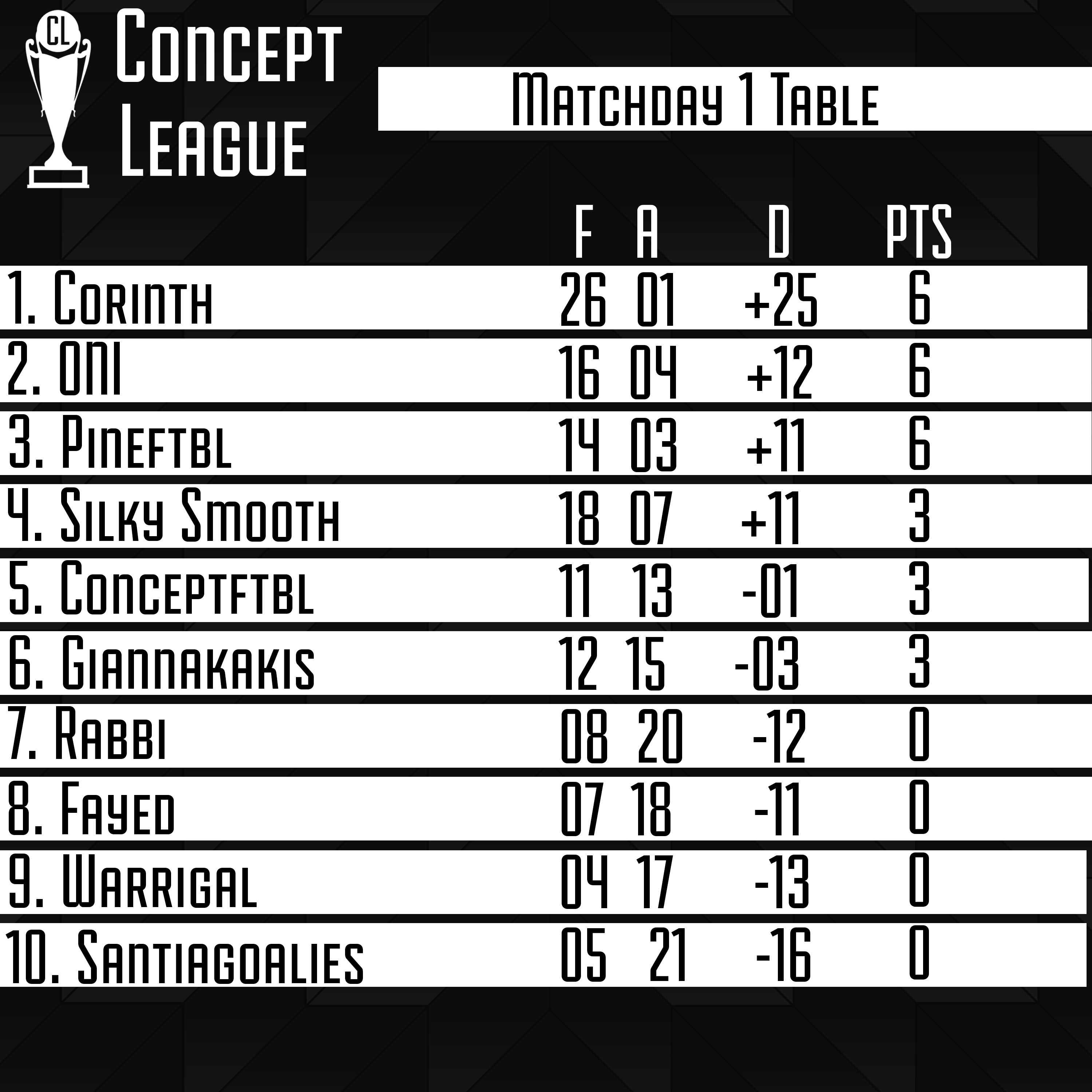 Premier League Matchday 2 Table