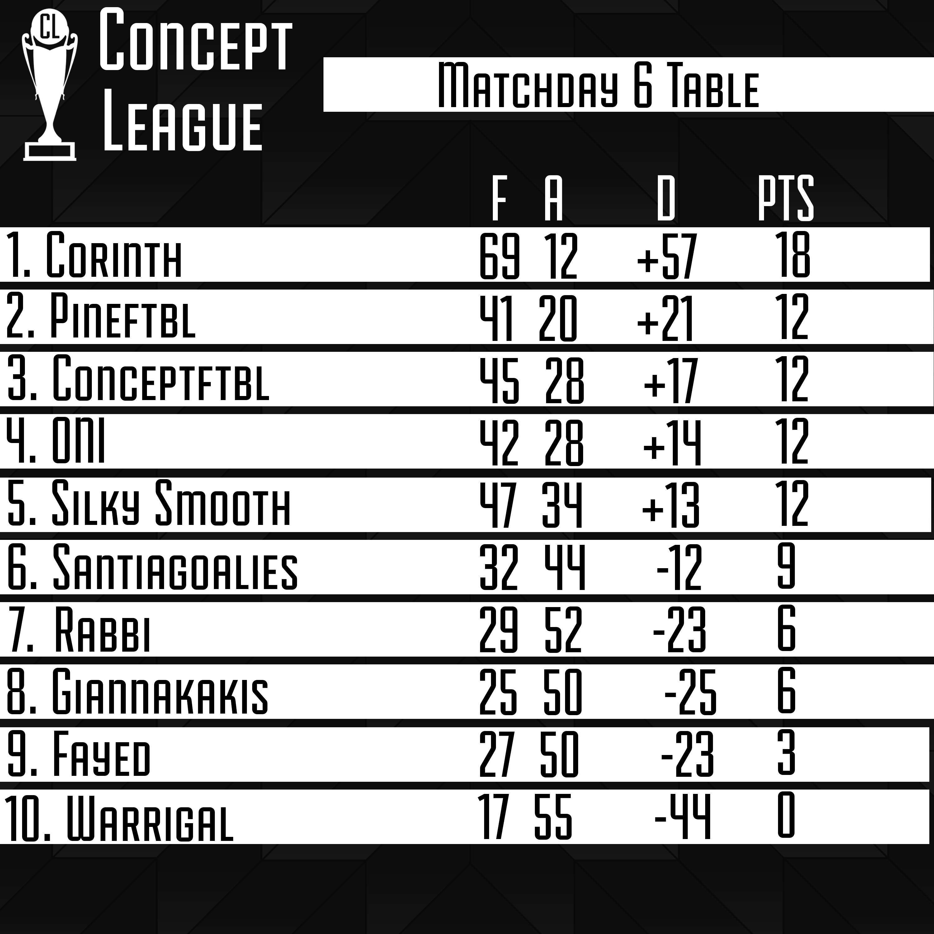 Premier League Matchday 6 Table