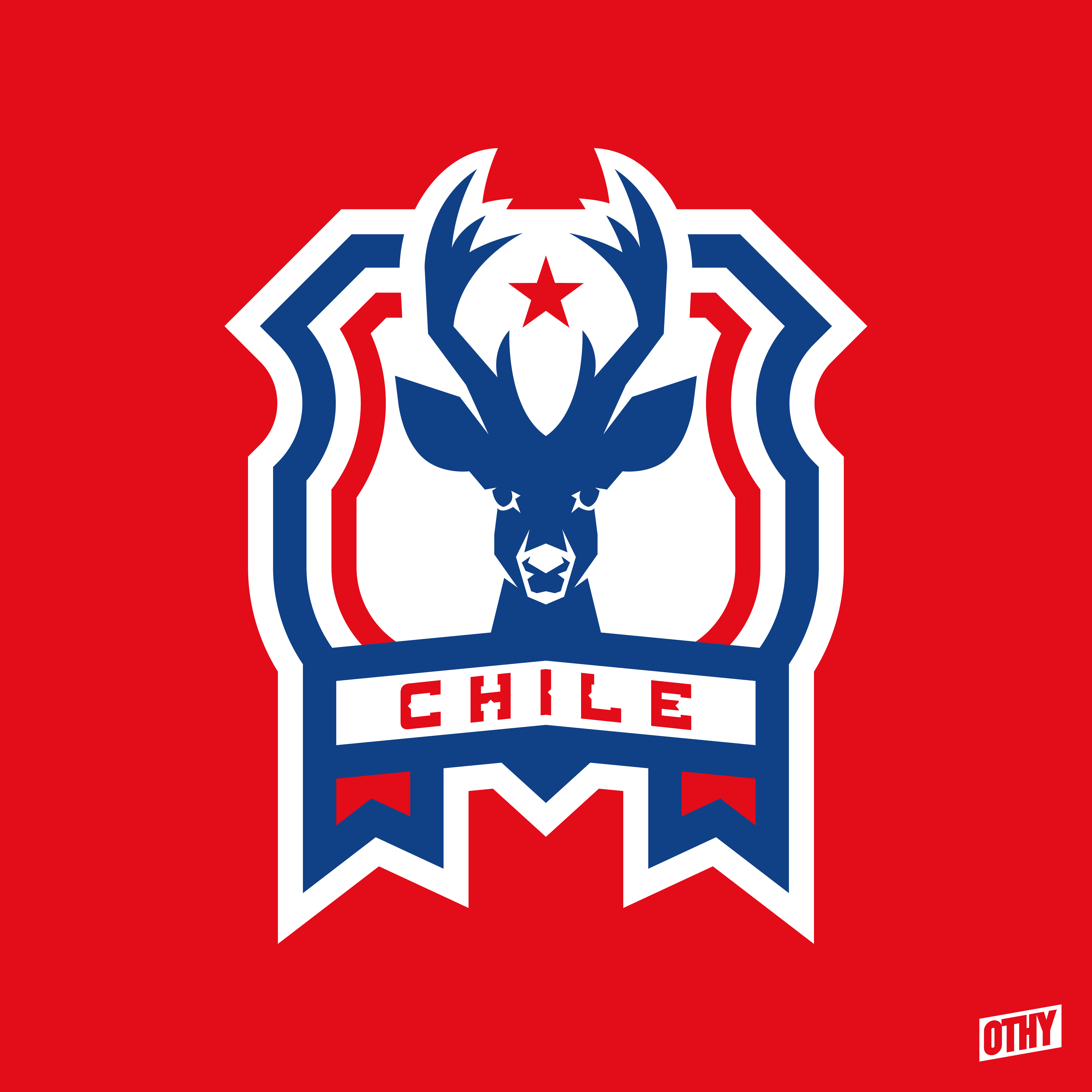 • Generic Description: This crest is inspired by the Chilean coat of arms. Featuring a huemul - one of the two animals featured on the coat of arms - with a star between the antlers, on a shield.