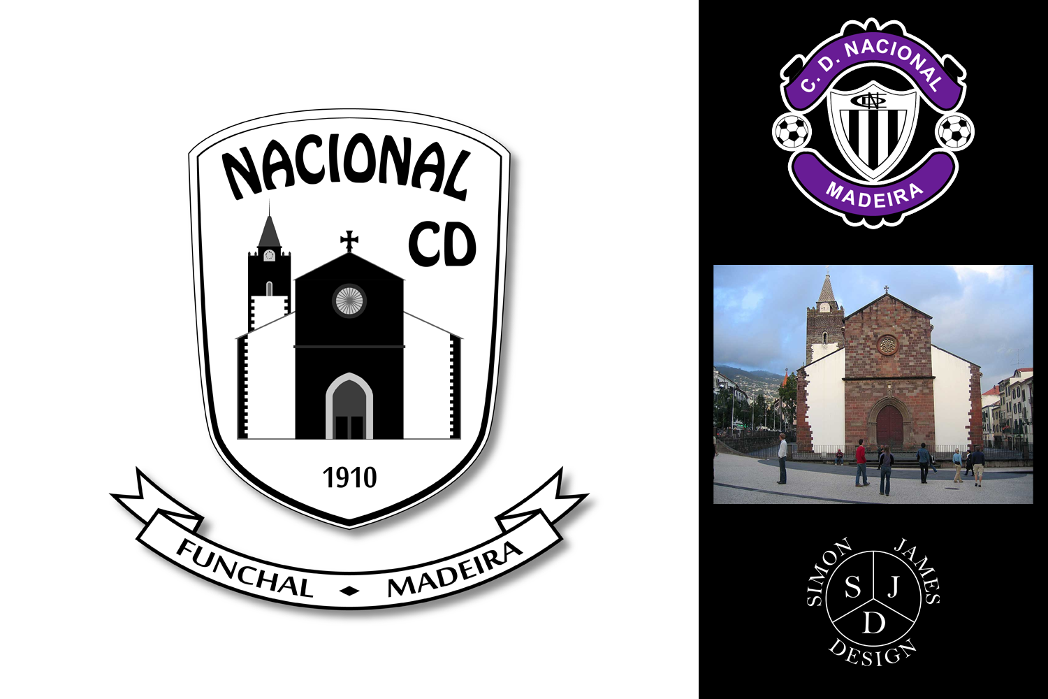 Starting to learn Illustrator, this is my first solid attempt at a crest. The current badge for Nacional is a Man Utd copy so I've made a graphic of the Catedral de Funchal to be the focal point for the new design. Feedback definitely appreciated.