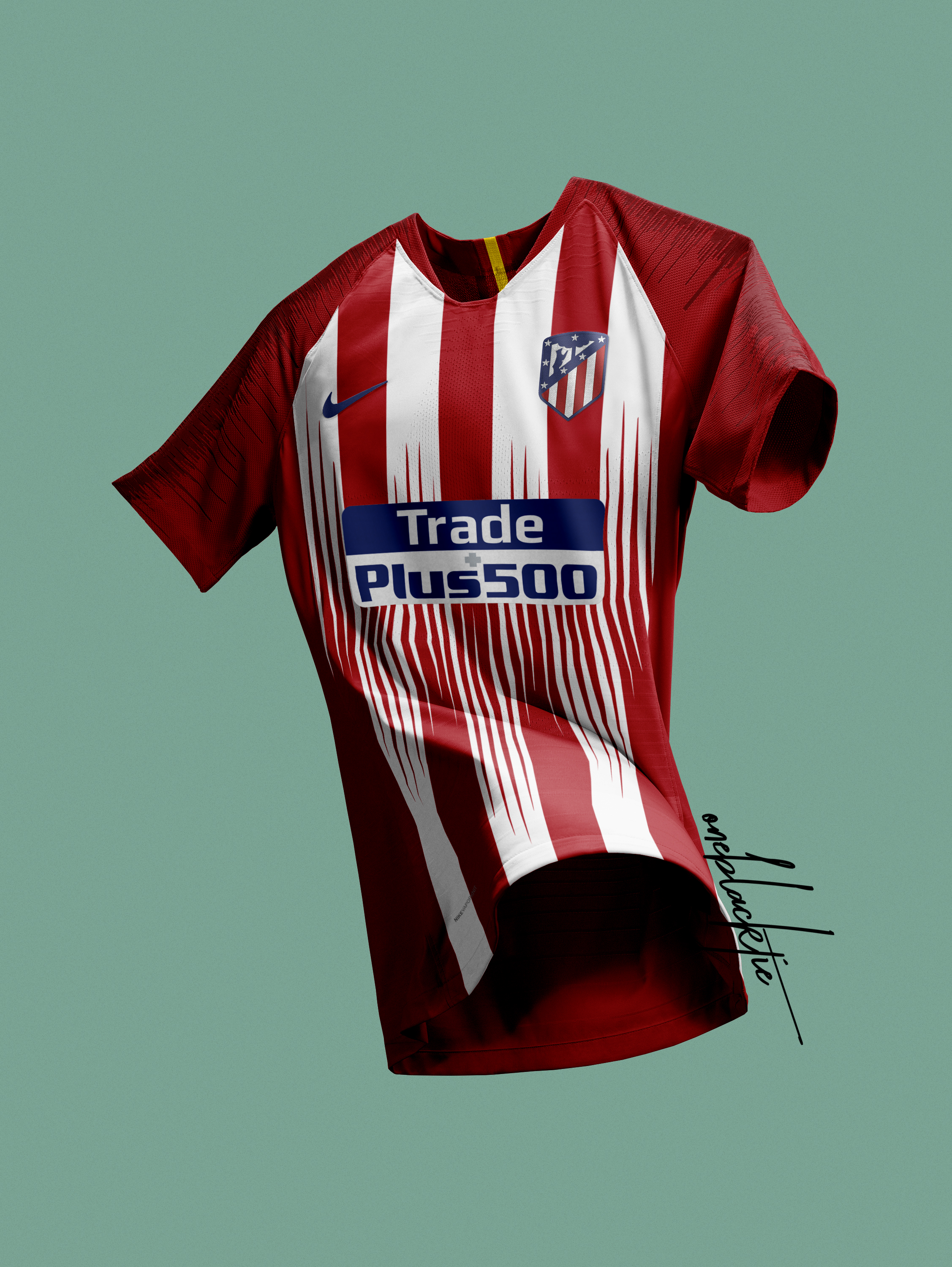 A prediction of the Club Atlético de Madrid's home jersey to the 2018-19 season, featuring a bespoke design on the stripes.