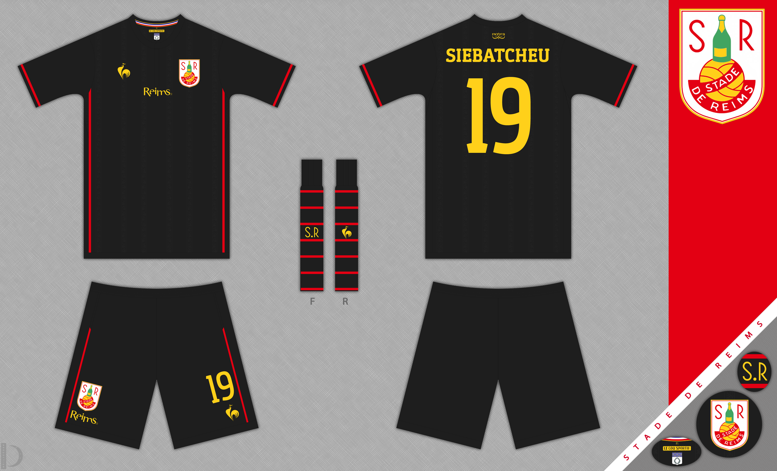The crest is a version of the football and champagne bottle, and on the back of the shirt is the date of the clubs foundation and the date of the team changing its name to Stade de Reims.
