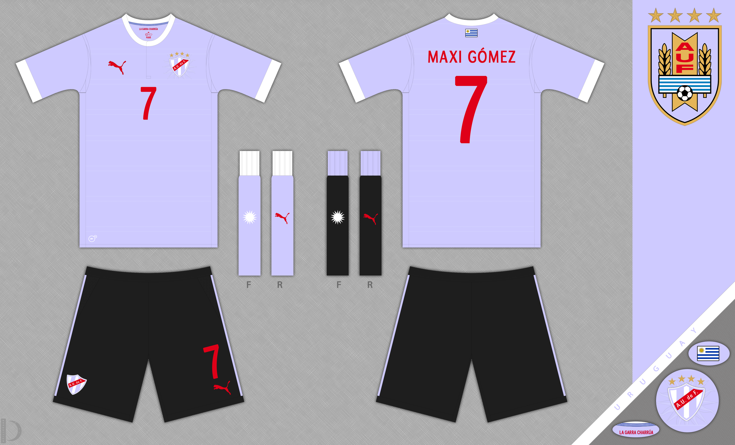 Home kit for Uruguay, in the sky blue shirts with black shorts.