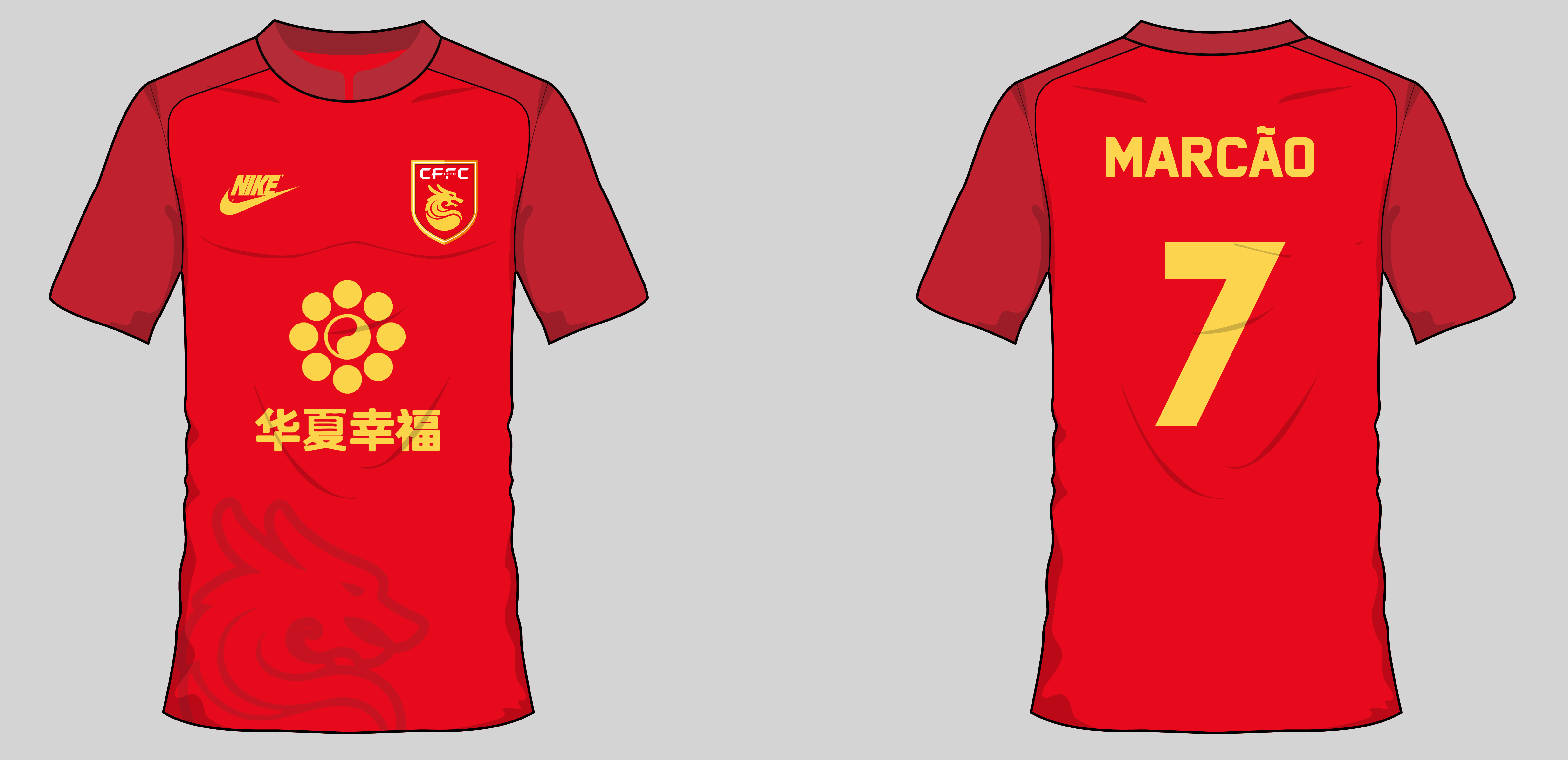 Home kit concept design for Chinese Super League club Hebei CFFC. Design inspired by the dragon on their wonderful badge.