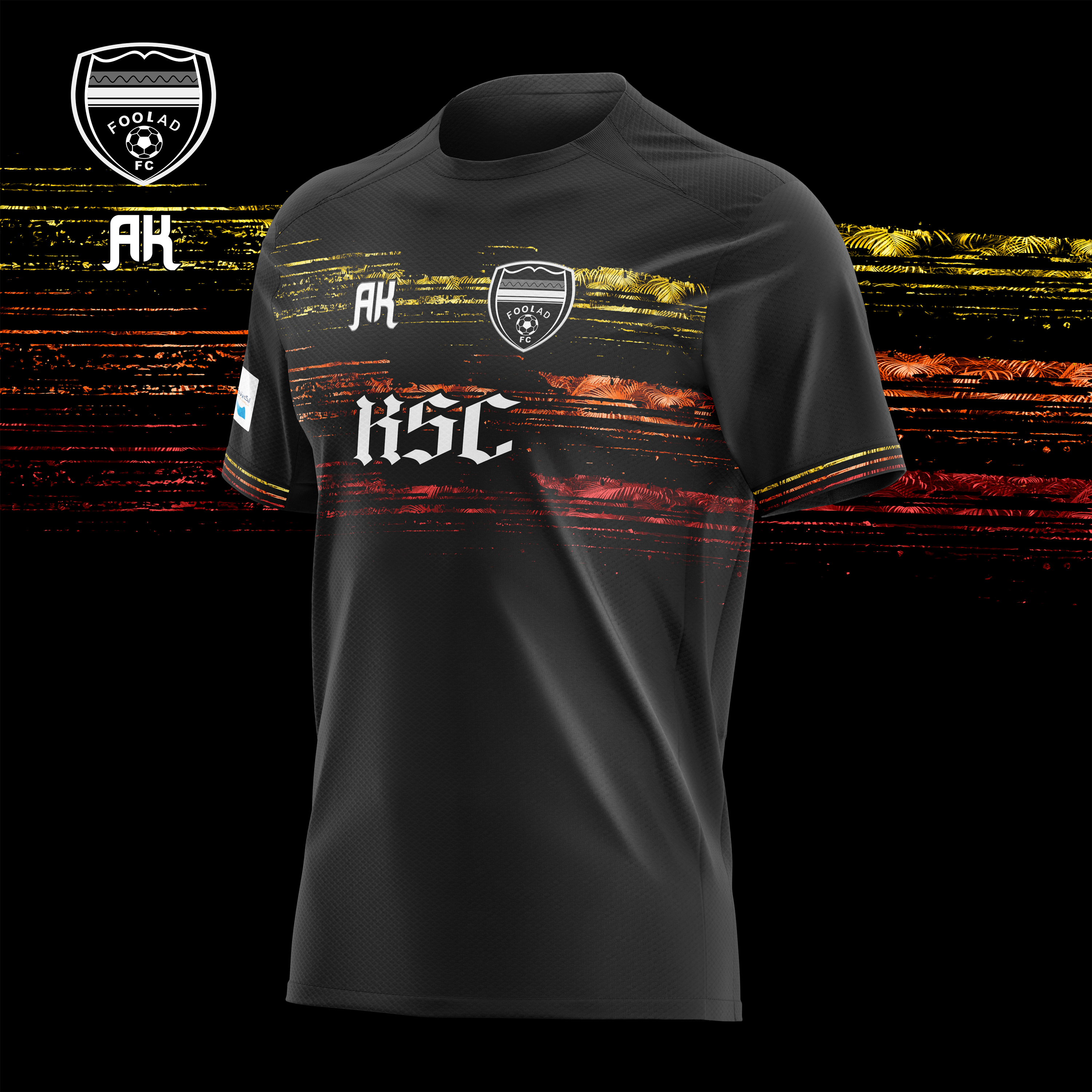In this work, along with a palm leaf pattern, the three main and organizational colors of Foolad Club are also used (yellow, orange and red) so that the work is specific to this club at the same time.