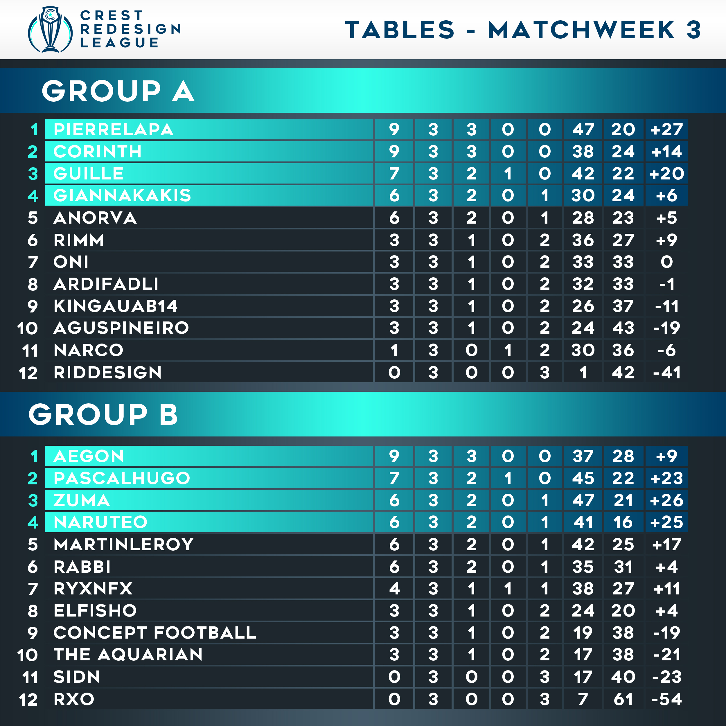 Tables - Matchweek 3