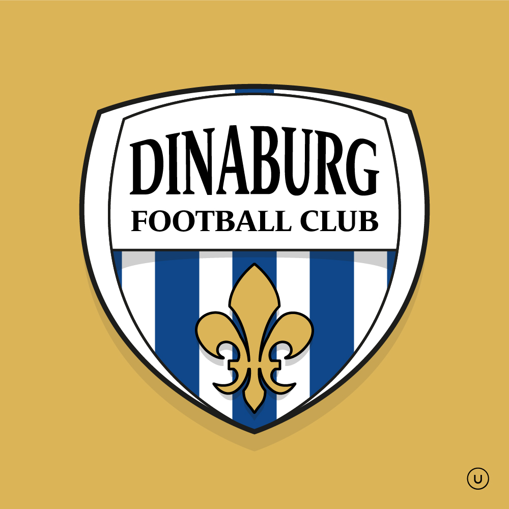 Updated Crest with blue stripes across the logo, the single blue stripe in the top, symbolizes the merger between FK Daugava and Dinaburg in 2009