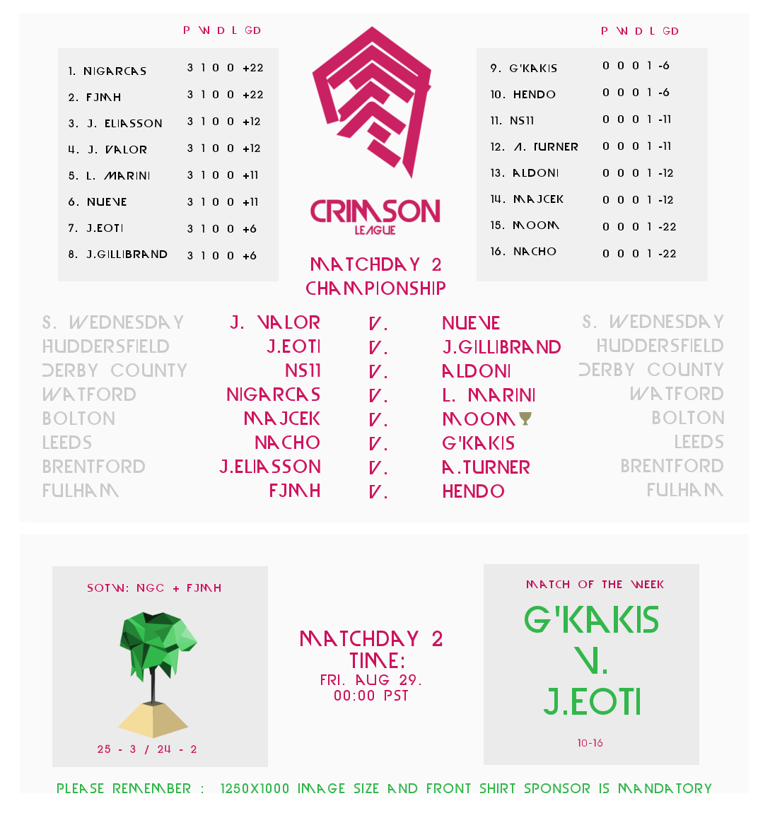 Matchday 2 Draw : Crimson League