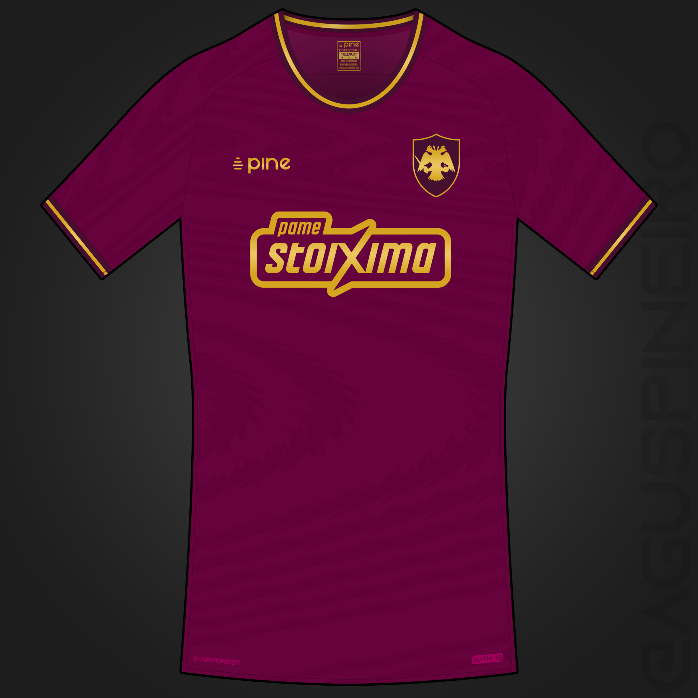 • Generic Description: Third kit design for AEK, from Athens, Greece. The color comes from the Byzantine flag. The kit is completed with reddish purple shorts and socks.
