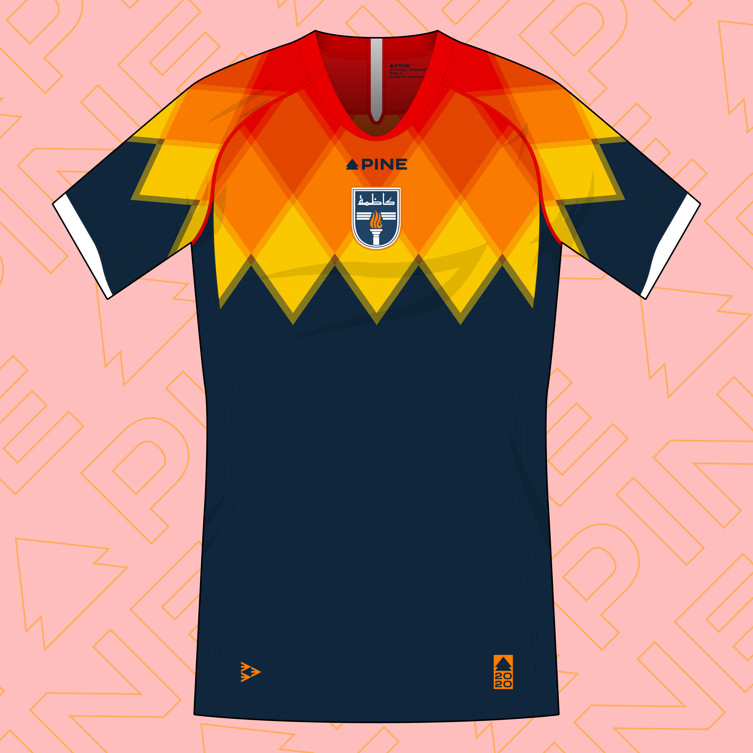 • Generic Description: Away kit design for Kazma SC, from Kuwait City, Kuwait. Went with a navy blue for the base color and added a red-to-yellow rhombus gradient, inspired by the torch on the club's crest. The kit is completed with navy blue shorts and socks.