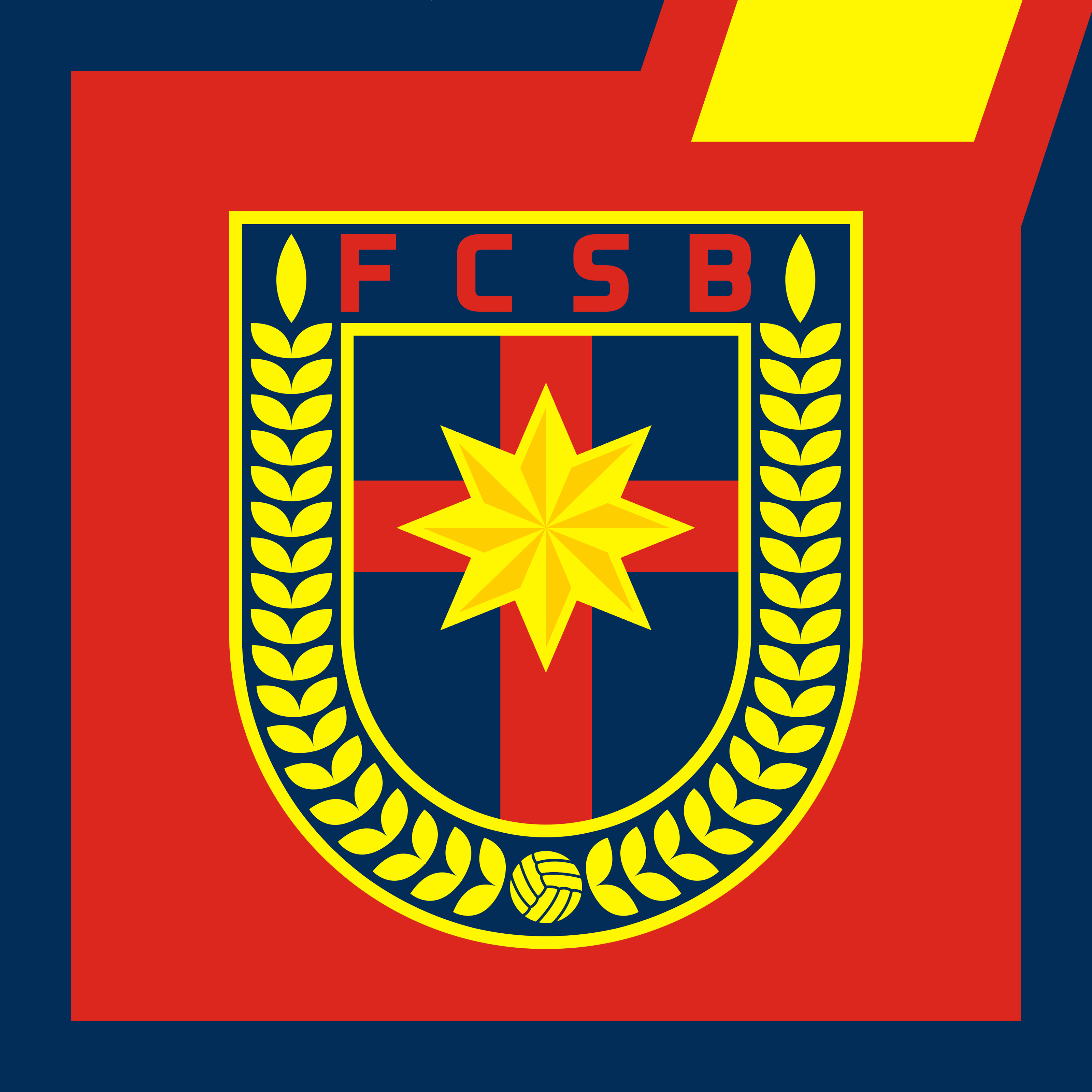 • Generic Description: Even that FCSB was striped from any identity that resembled FC Steaua Bucharest, I have created this redesign inspired by the crest of Steaua from 1961 to 1974, combined with modern crest elements like the 8 points star and the cross (maked to resemble a chriastian cross more than a plus, like the one on current crest). Writing the name up gived me space down the crest to add the ball from the 61 - 74 crest and surrounding the star - cross chield with a bigger wreath than the 61 - 74 one.