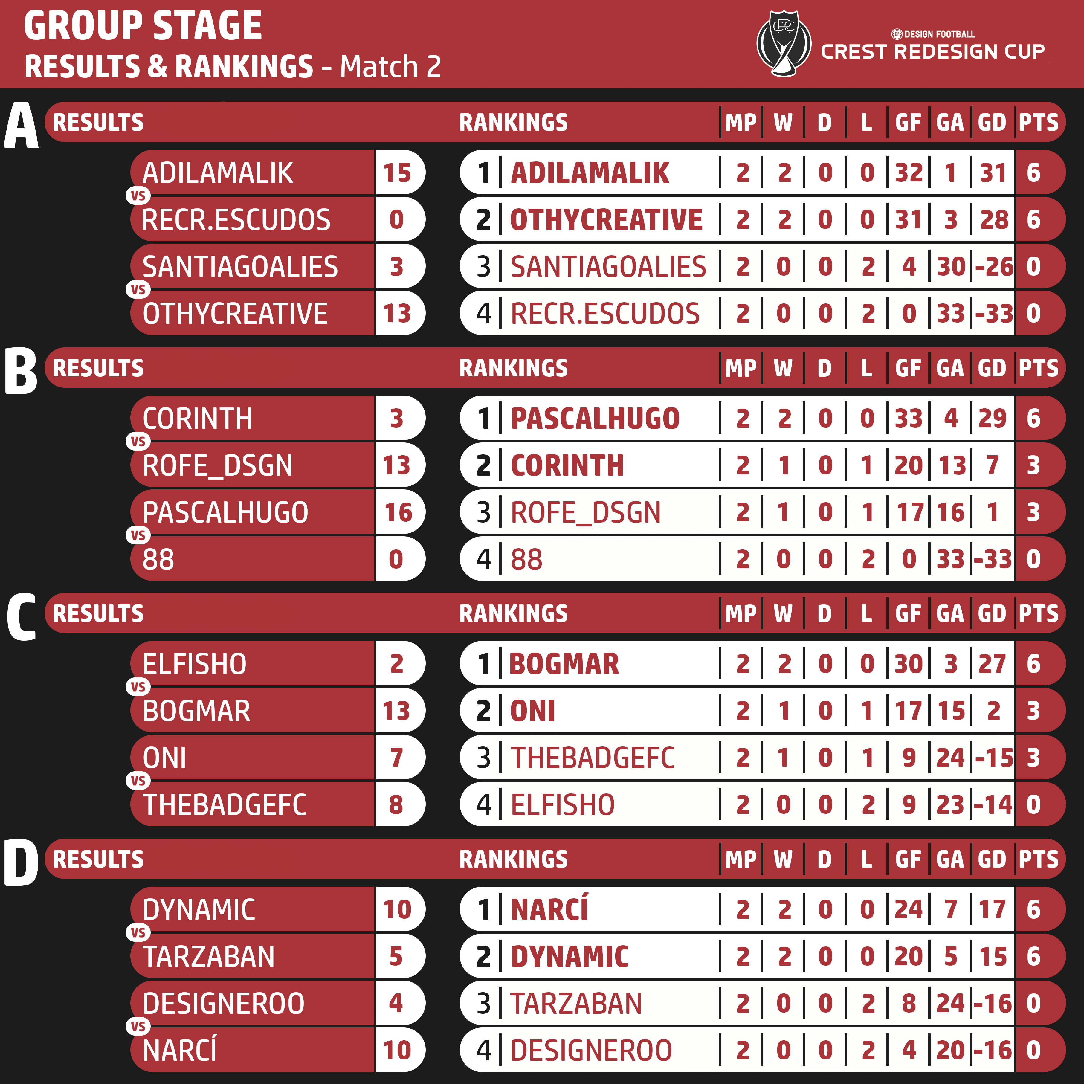 Matchweek 2 Results & Standings