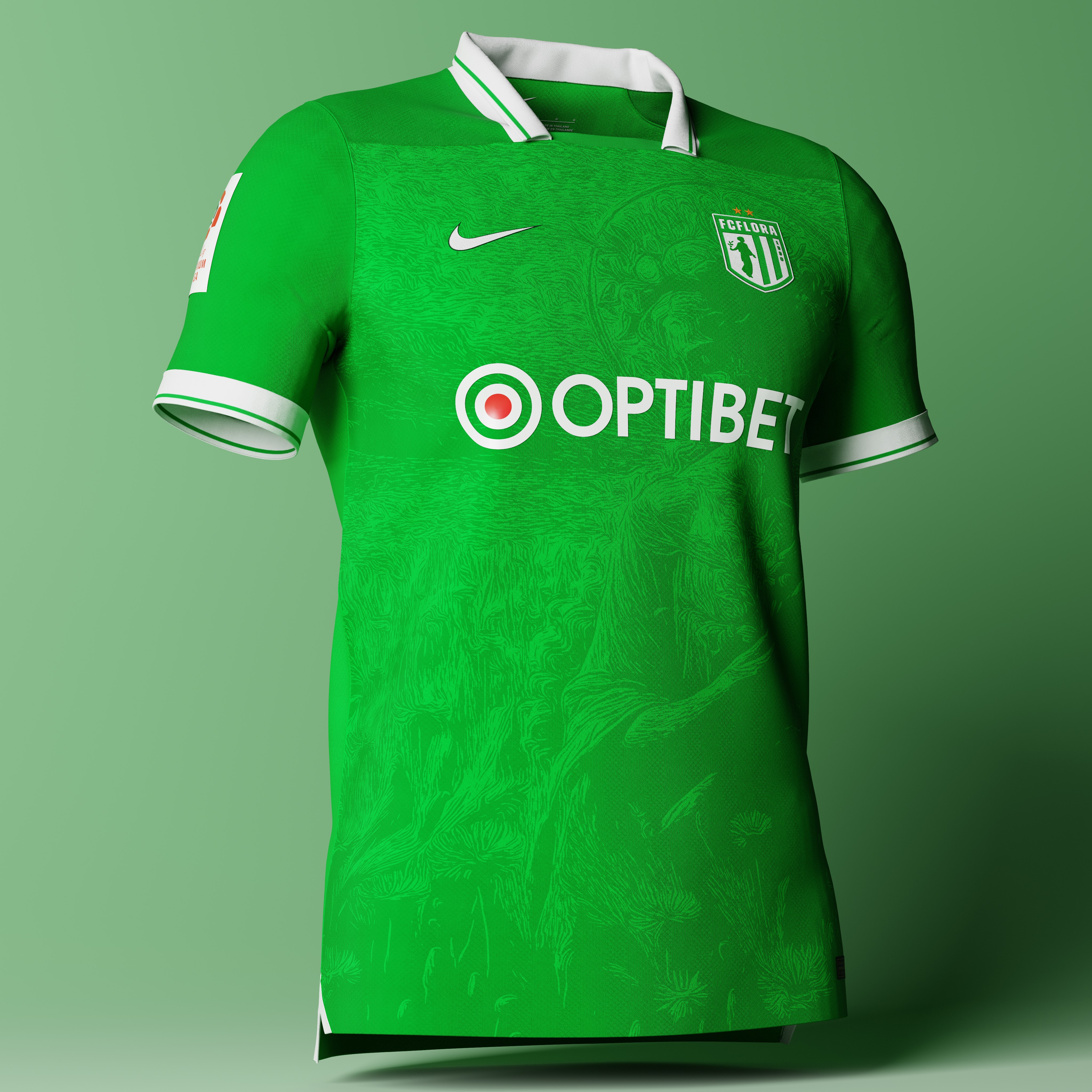 • Generic Description: Home shirt concept for Estonian club Flora. The jersey features a graphic depicting the Roman goddess Flora (who lends her name to the club) in a field of cornflowers (Estonia's national flower)