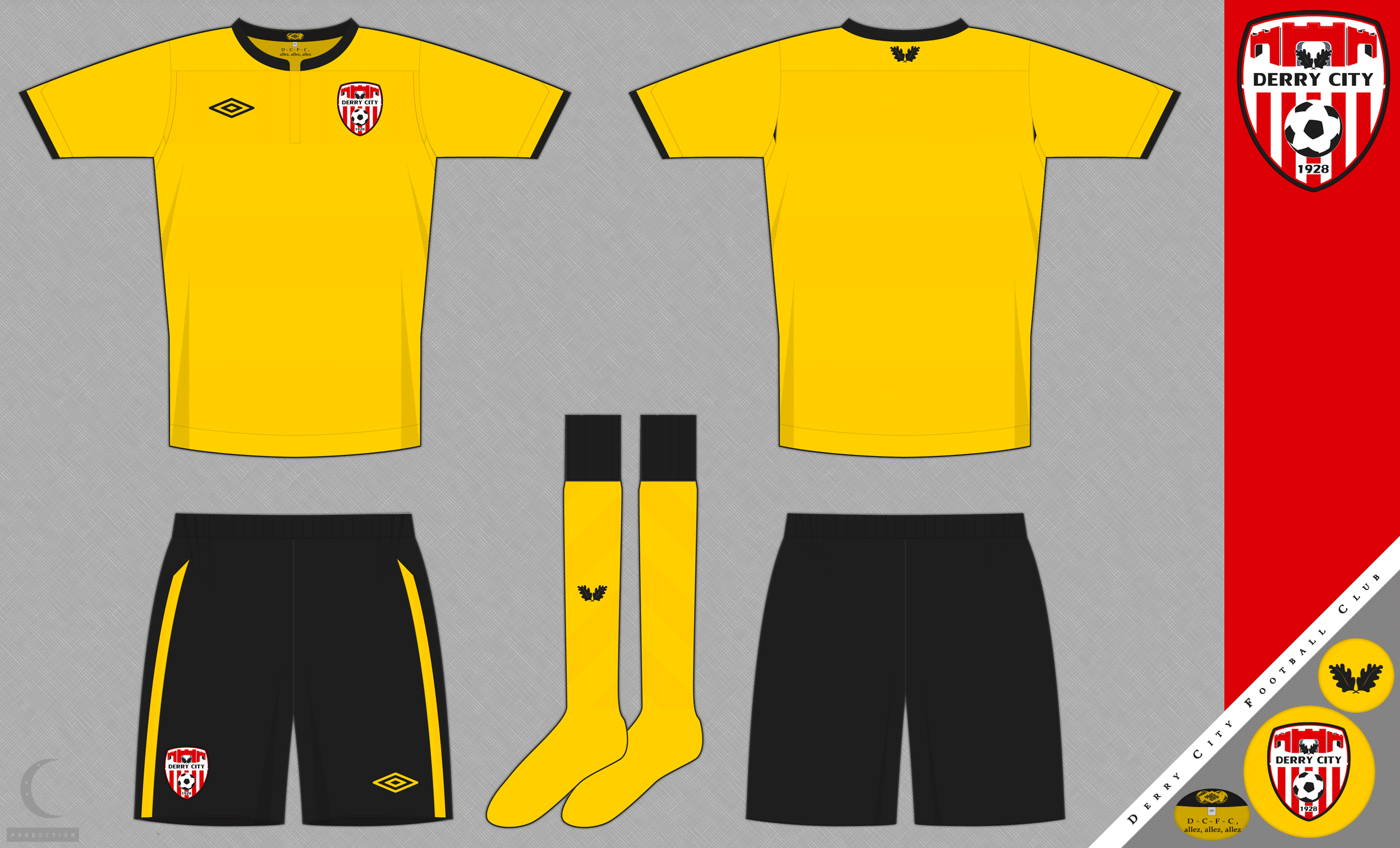 Change kit for Derry, in golden yellow and black, a popular choice (and the home kit for a period in the 1960s).