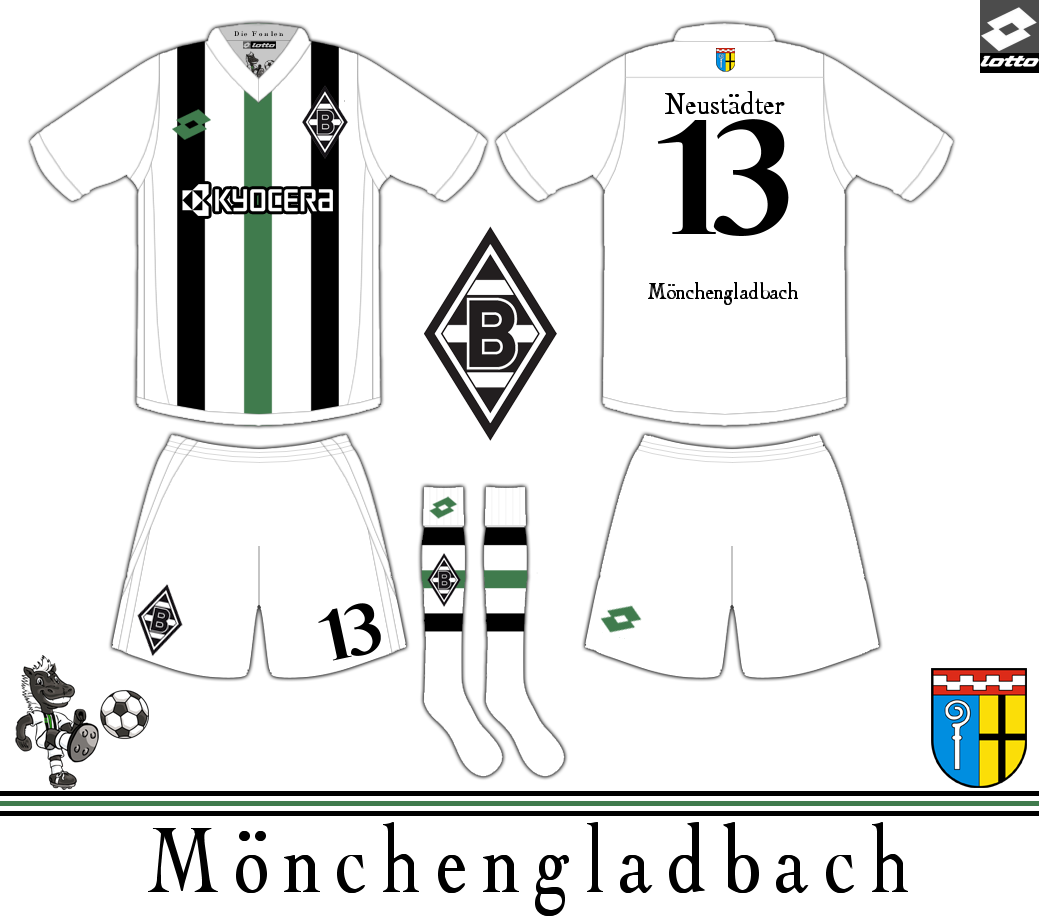 Remake of a classic shirt, this has the shield of Monchengladbach on the back, and on the inside of the collar has the club Mascot