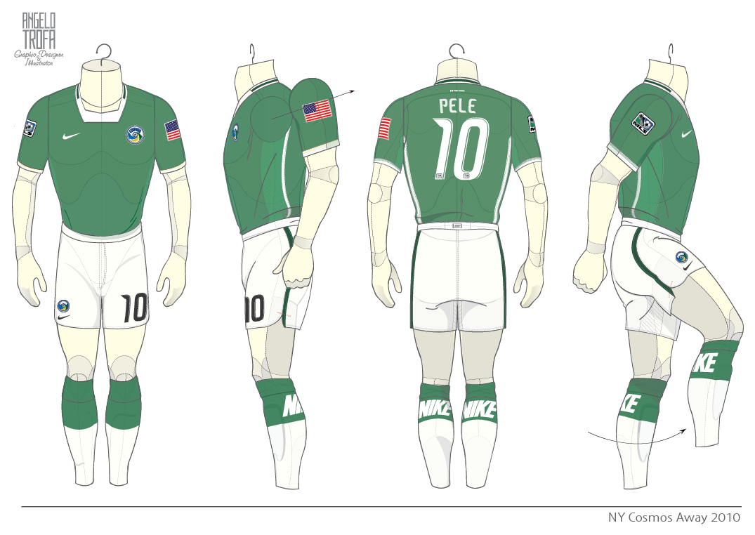 Using the template I created the home kit with this is the away strip, very similar in design to the home, holding all the same values. The Cosmos home and away kits both had white shorts...so I kept it, much nicer than an all green strip, and a new colour for my mannakin...grey clashed too much.