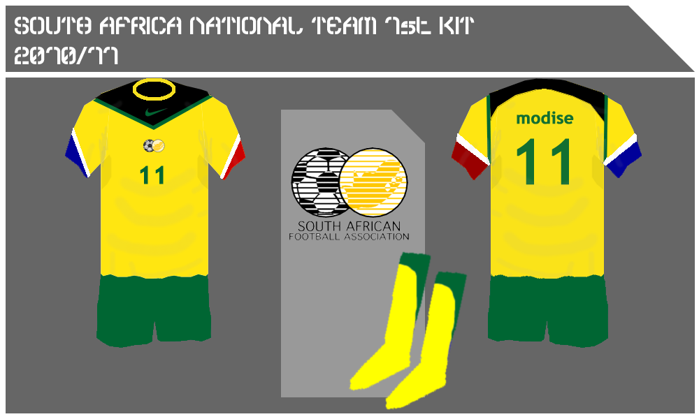 South africa kit based on the design of the flag, but with yellow and green reversed. Same template as Brazil kits.