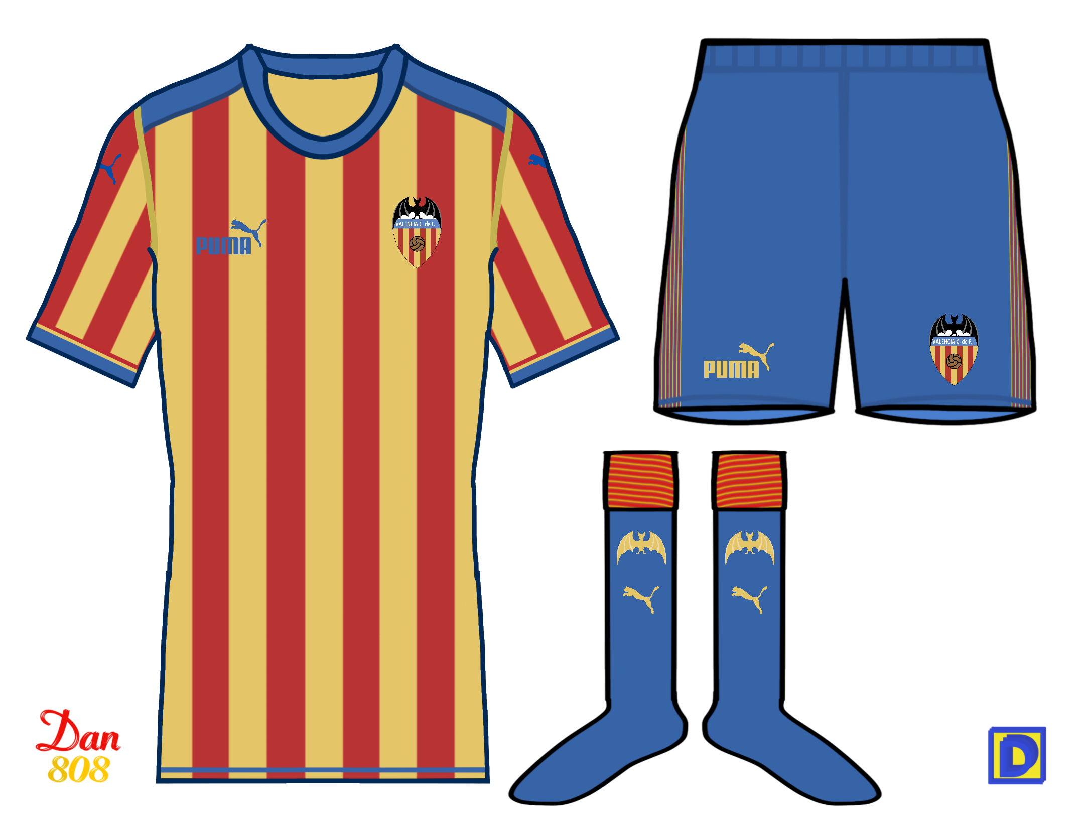 Valencia. Includes Classic Senyera Design and Retro Badge. With Blue Shorts and Socks. Classic Puma. Made with Procreate. Comment Below