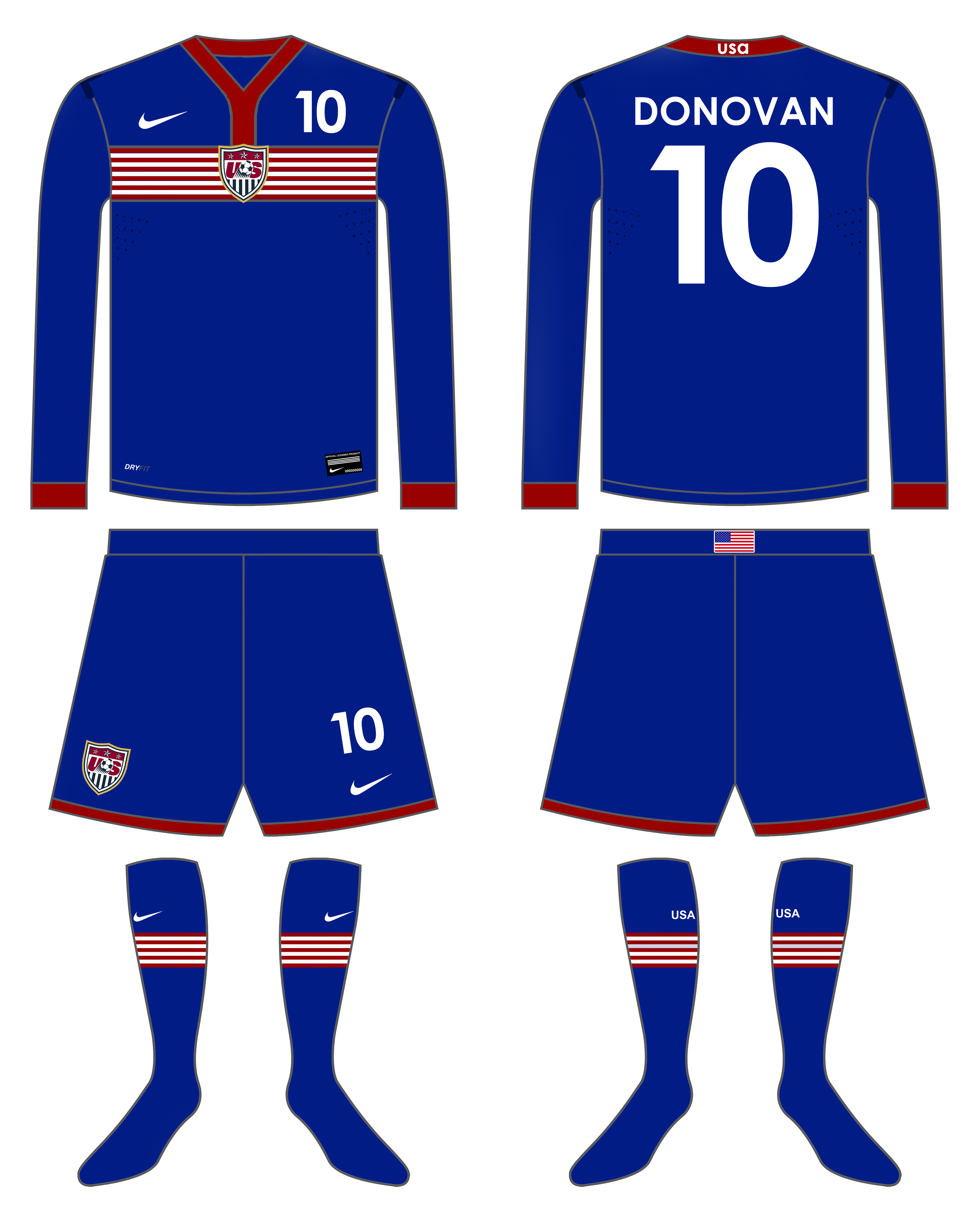 A Blue kit, featuring red and white stripes that represent the American flag.